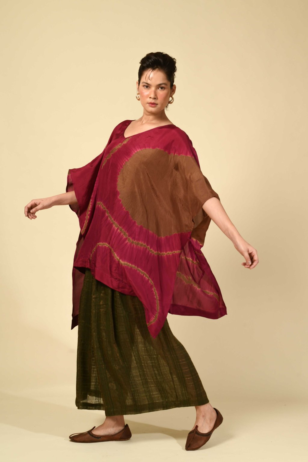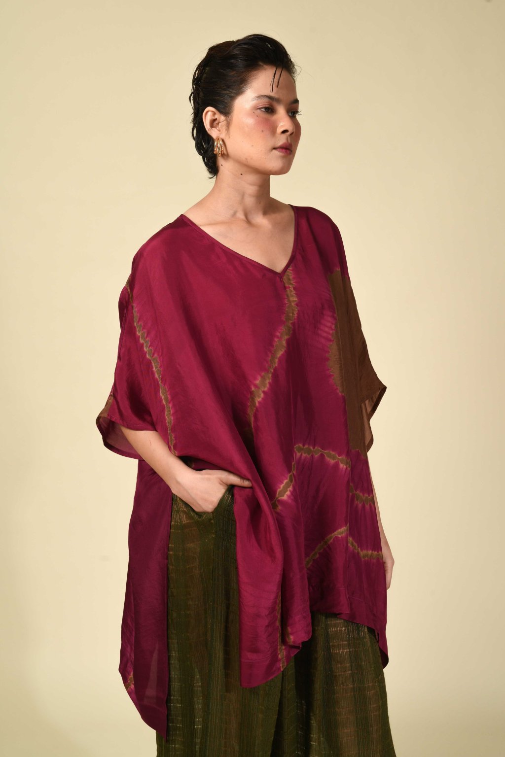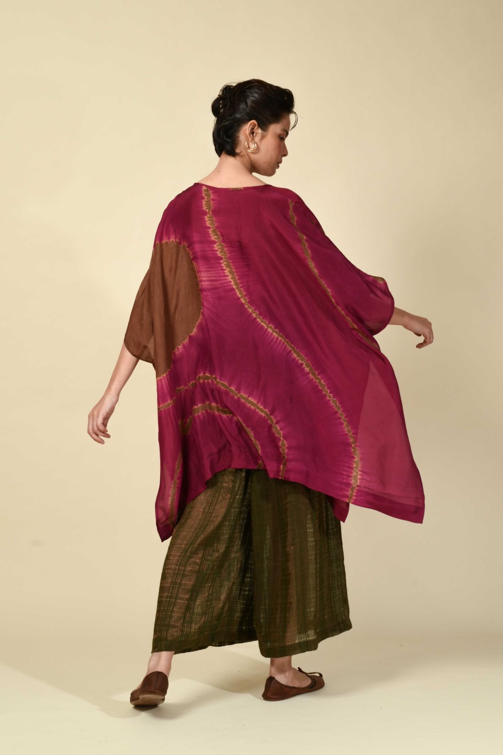 Itajime hedvábné pončo s výstřihem do V | Nebula / azalka a topaz