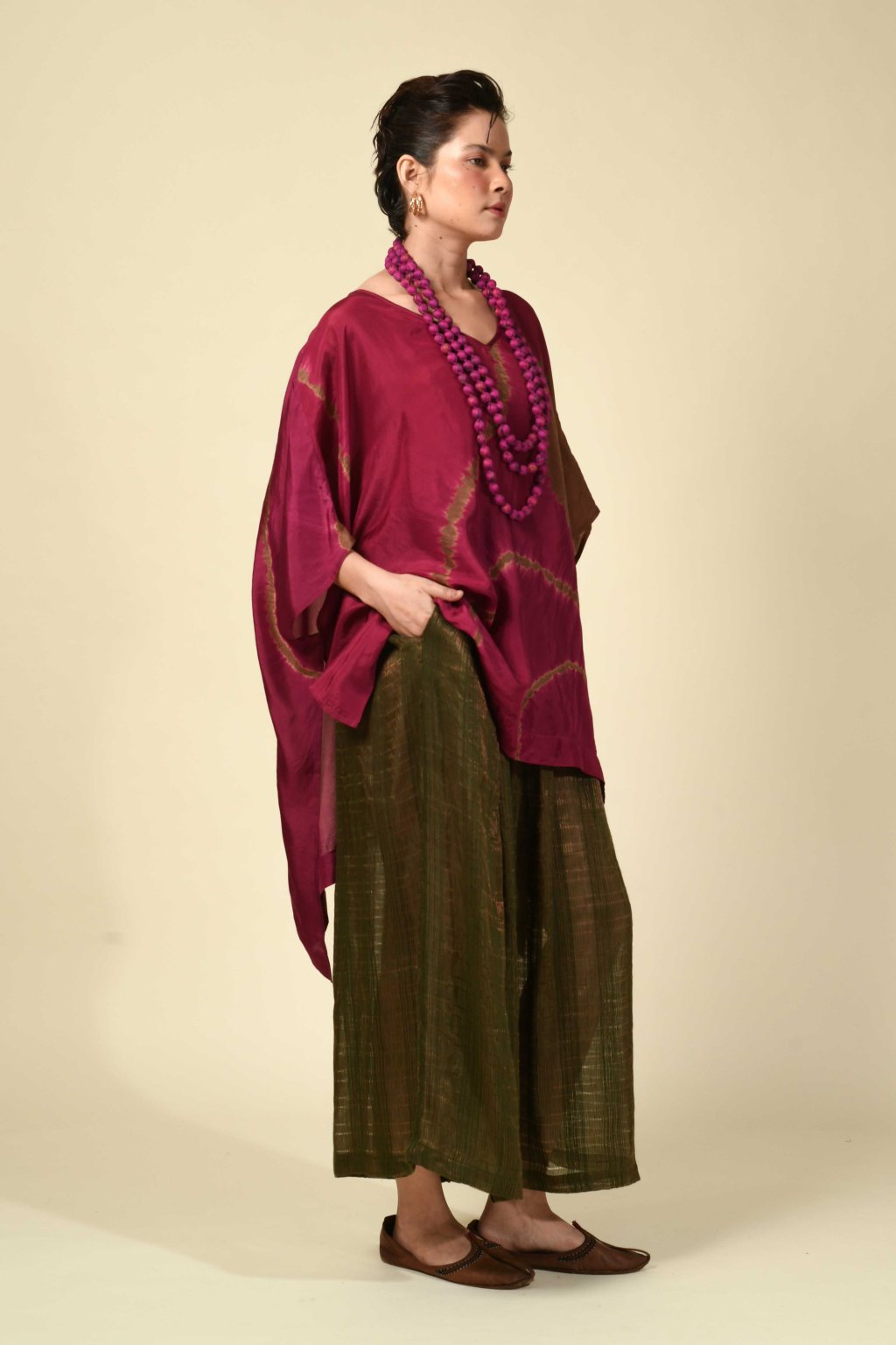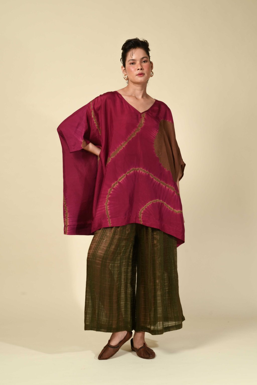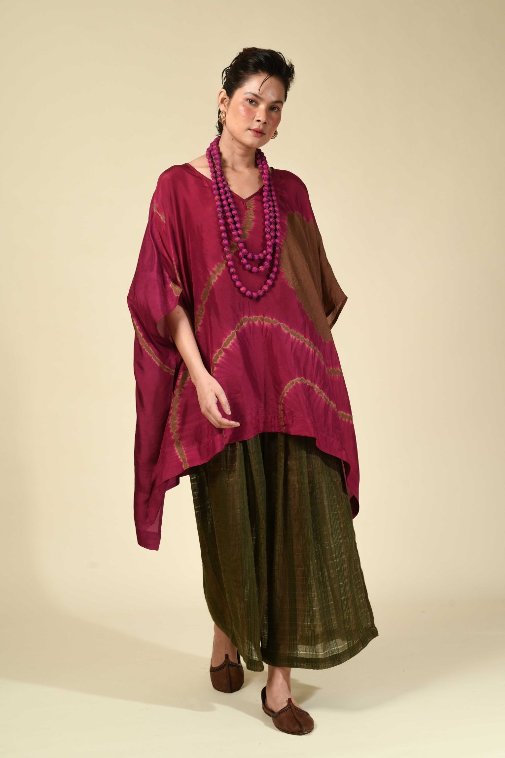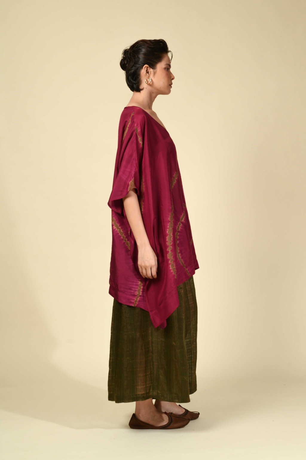 Itajime hedvábné pončo s výstřihem do V | Nebula / azalka a topaz
