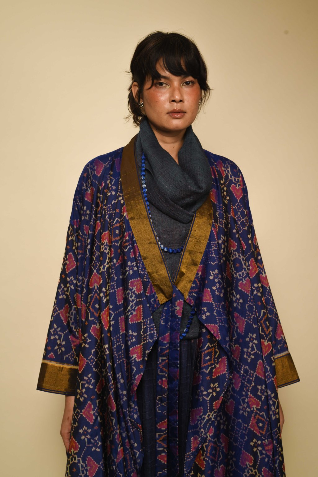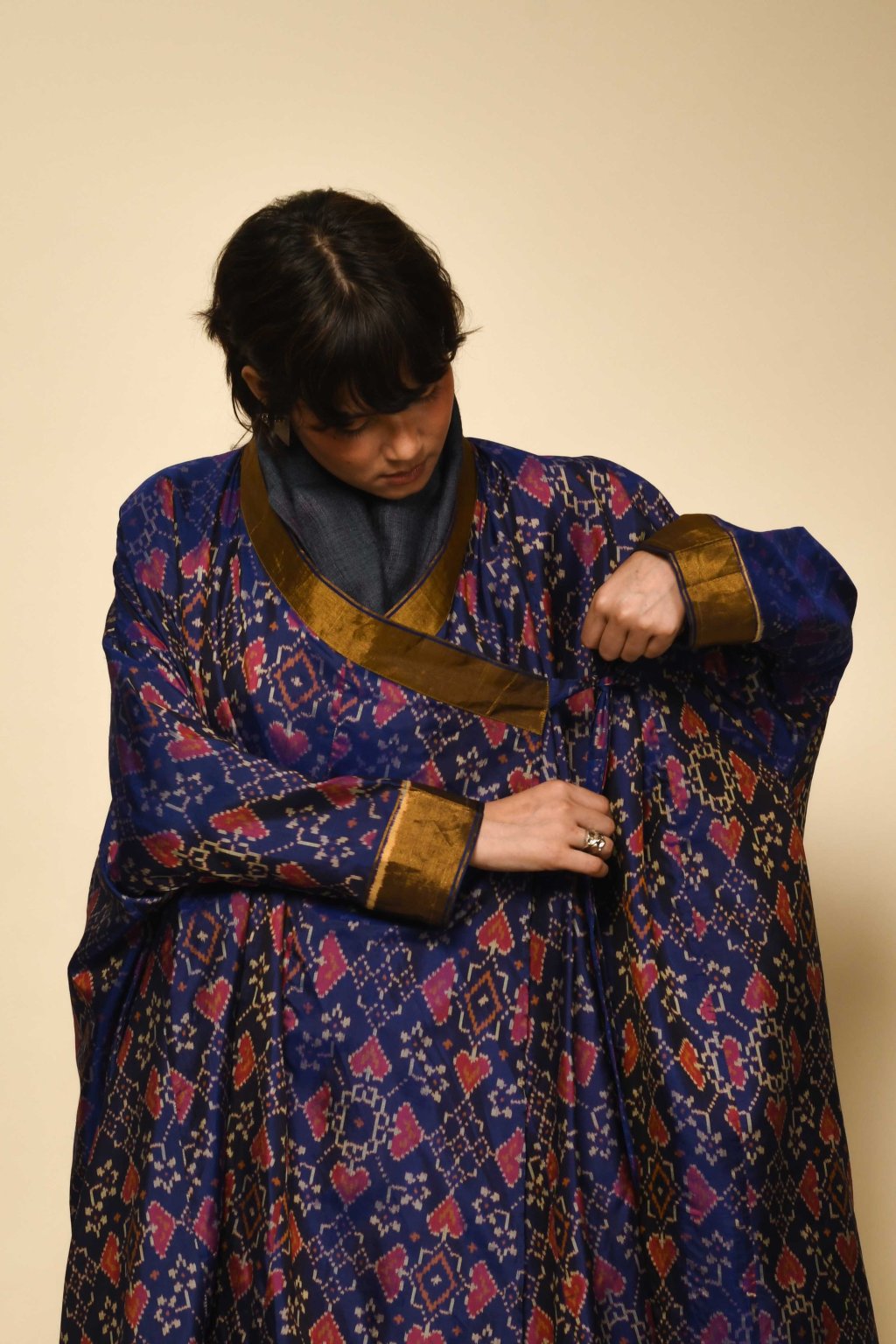 Jama hedvábná Ikat tunika-róba | půlnoční modrá
