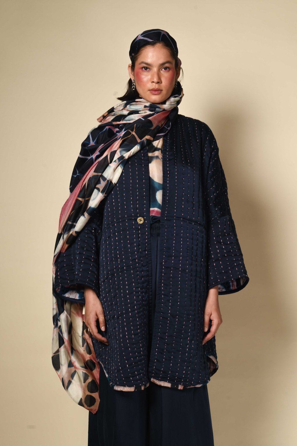 Oboustranný prošívaný hedvábný kabát Itajime | chand