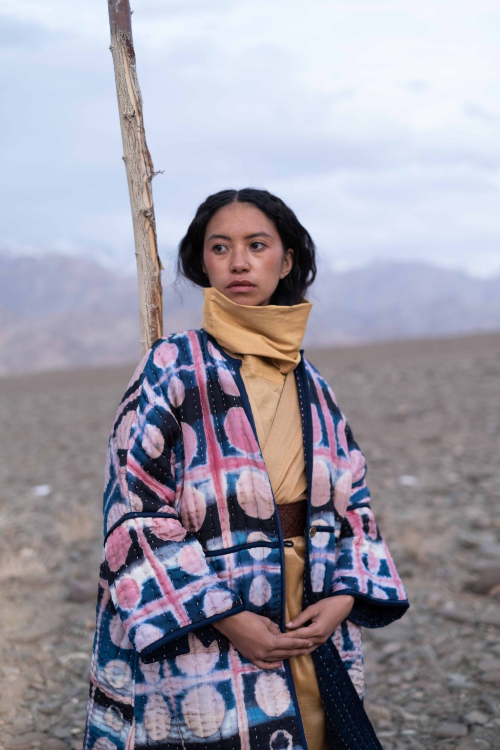 Uvnitř Talismanu má každý oděv svůj význam: jako rituál, jako vzpomínka, jako dědictví. Naše kapsulová kolekce Itajime hovoří o oděvu jako o umění a kultuře. Itajime je starověká japonská tradice rezervážního barvení textilu, při které se látka skládá, svírá mezi dřevěné bloky a ponořuje do barvy, čímž vznikají působivé geometrické vzory. Ve studiu House of Wandering Silk indičtí řemeslníci tuto techniku nově aplikovali na lesklé hedvábí – na textilie, které svou splývavostí a zářivým povrchem umocňují drama samotné geometrie. Každý kousek se tak stává dialogem napříč geografickými hranicemi: japonská preciznost a dědictví se setkávají s indickým uměním, struktura se rozplývá v pohybu, když látka plyne společně s tělem. Výsledkem je abstrakce ožívající barvou a světlem. V kolekci Itajime se hedvábí stává plátnem a oděv se stává uměním.