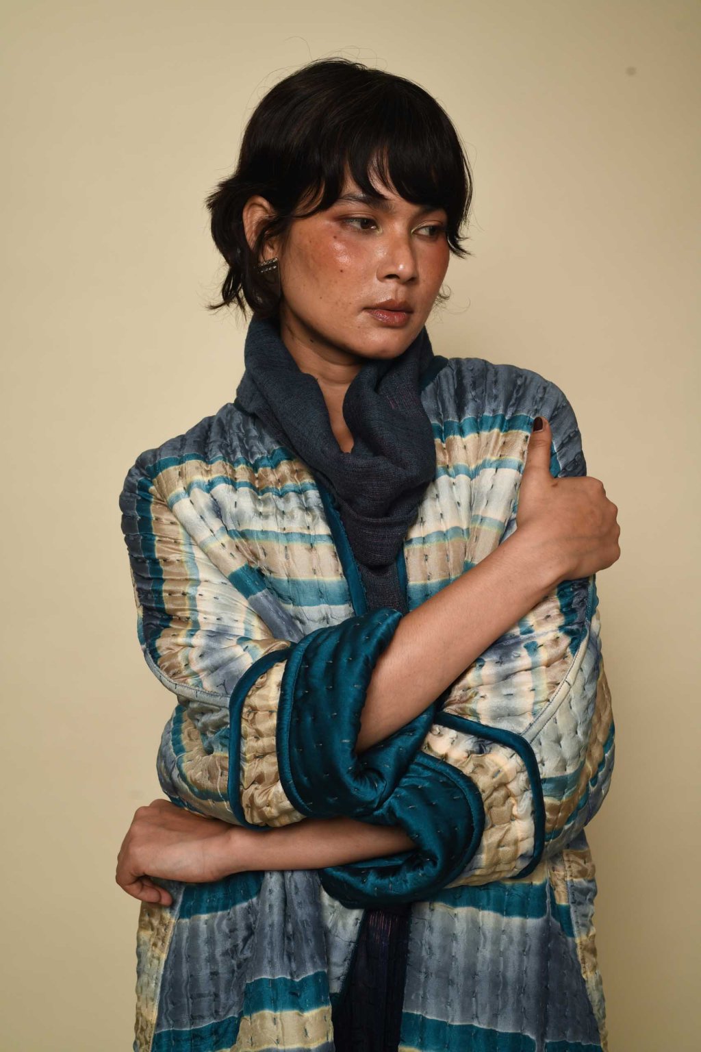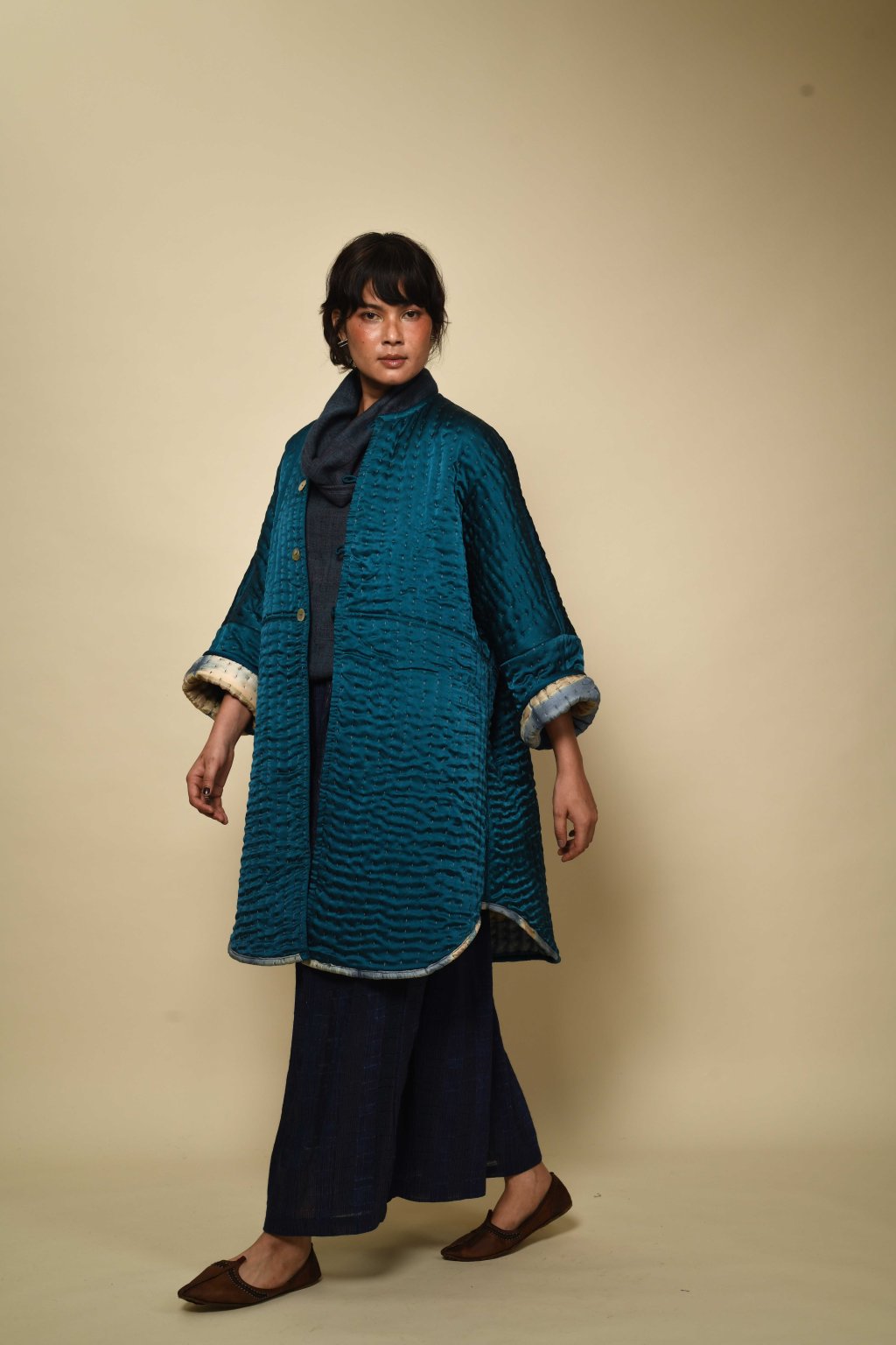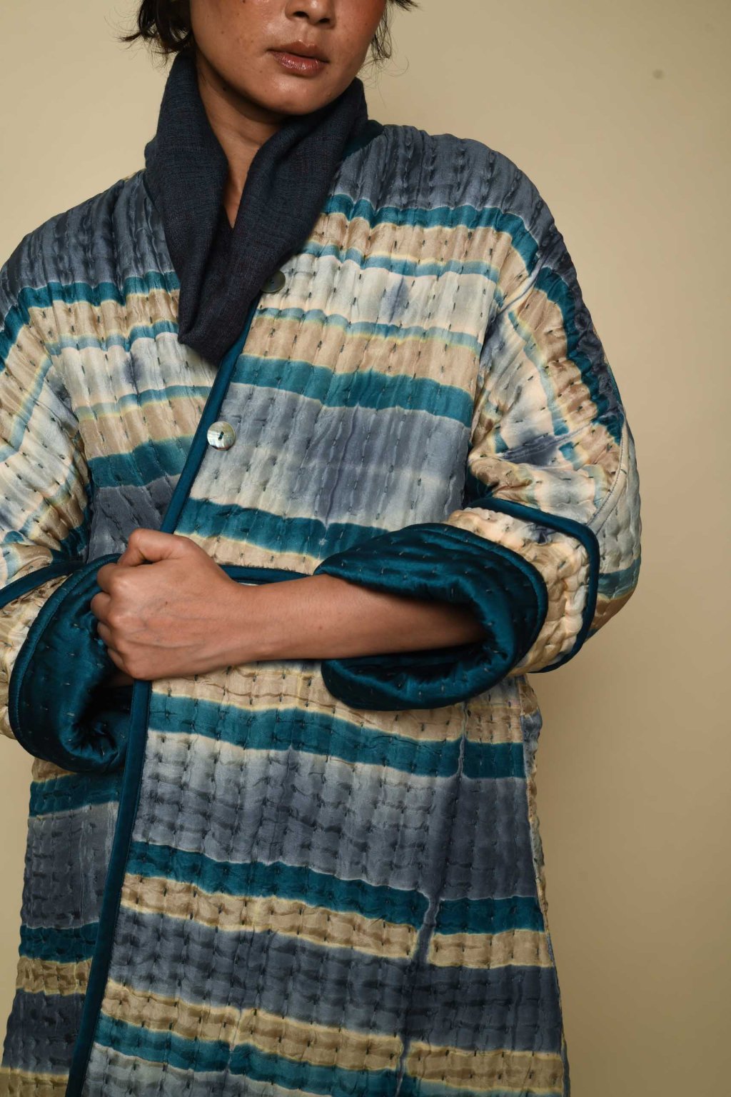 Oboustranný prošívaný hedvábný kabát Itajime | urkoma