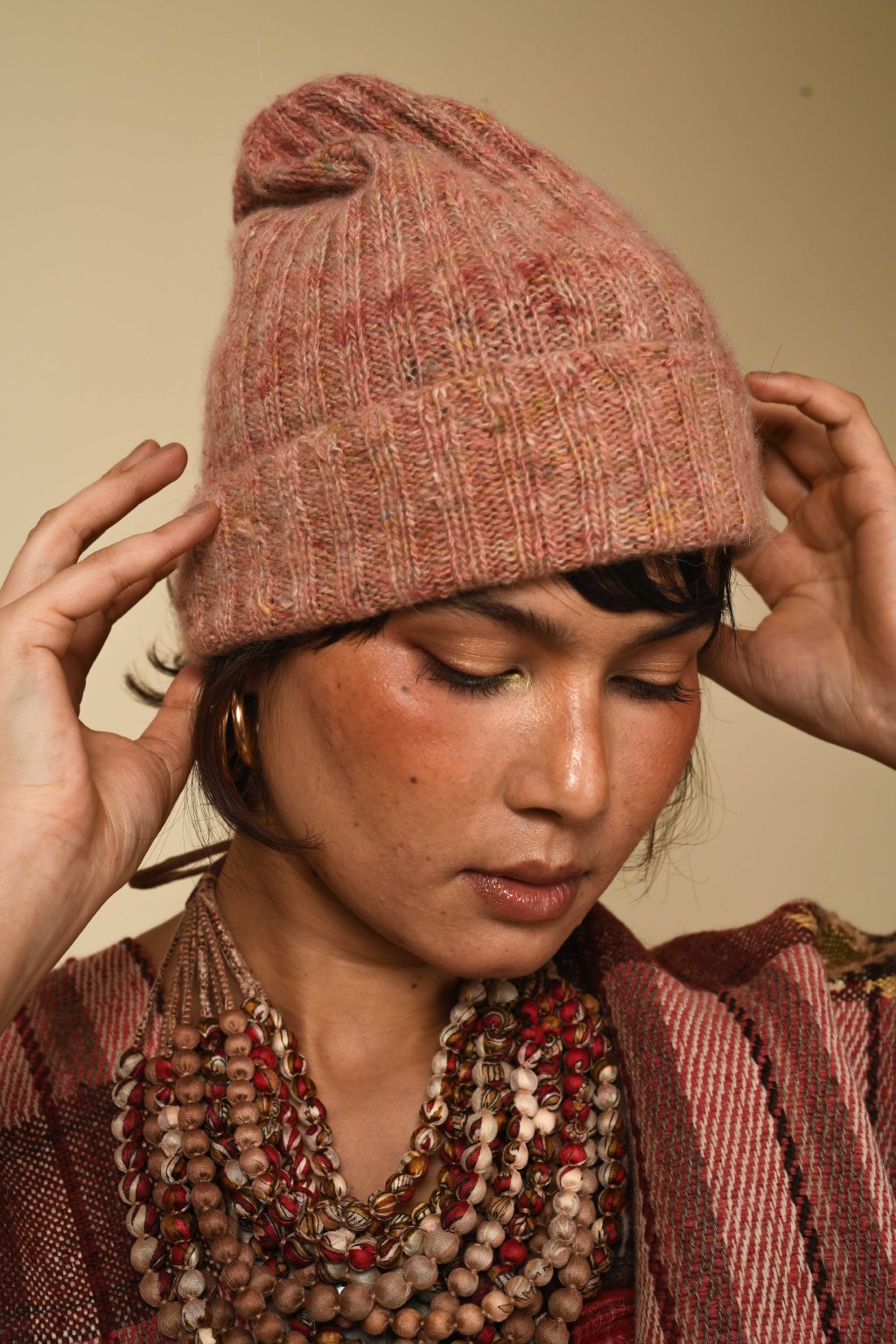 Pašmínová čepice | přírodní barvivo sapanové dřevo