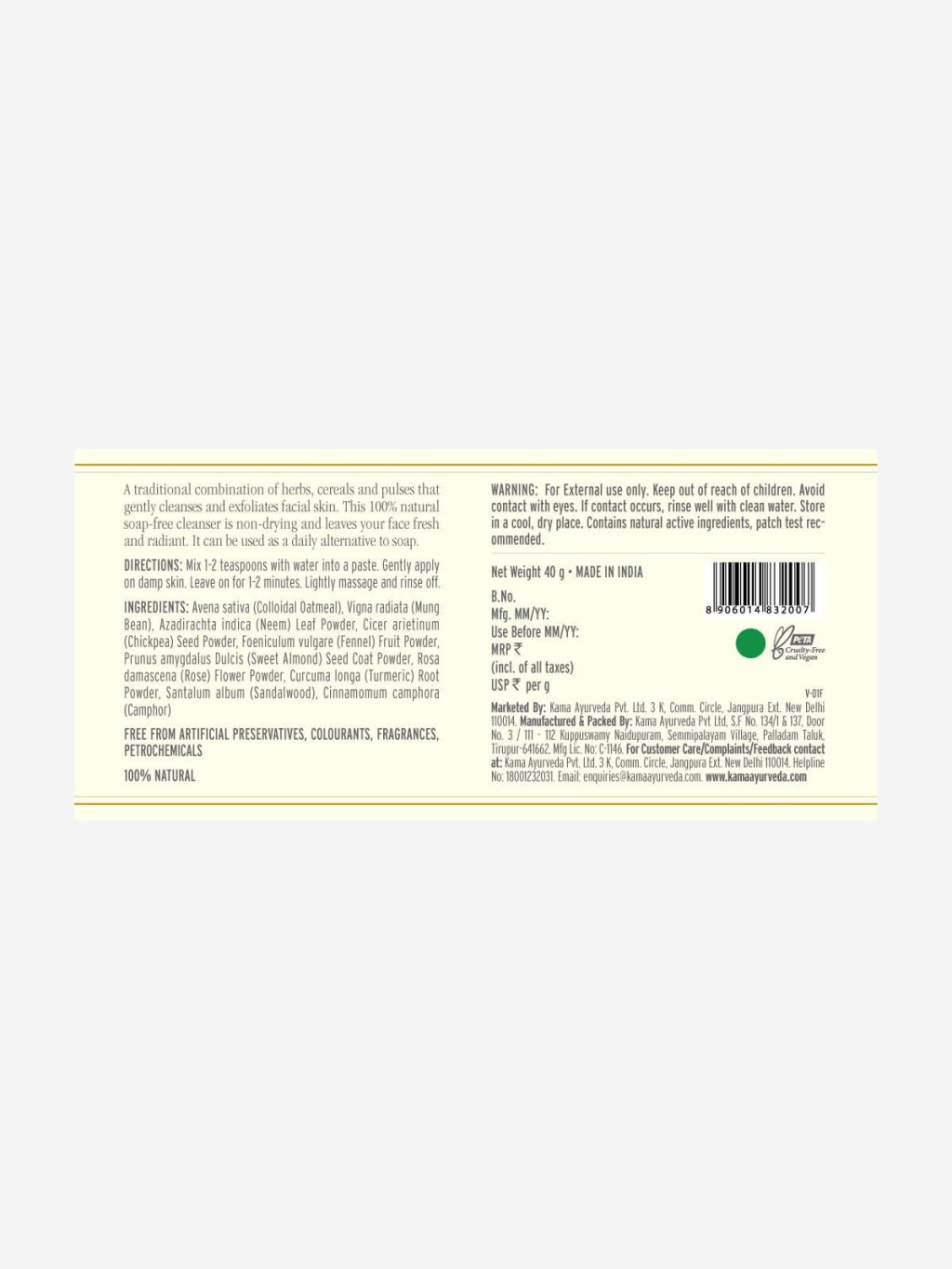 Tradiční směs bylin, obilovin a luštěnin rozemletá na čisticí prášek, který jemně peelinguje pokožku obličeje. Tento nevysušující přípravek na mytí obličeje bez mýdla je vynikající alternativou k drsným pěnivým čisticím prostředkům.